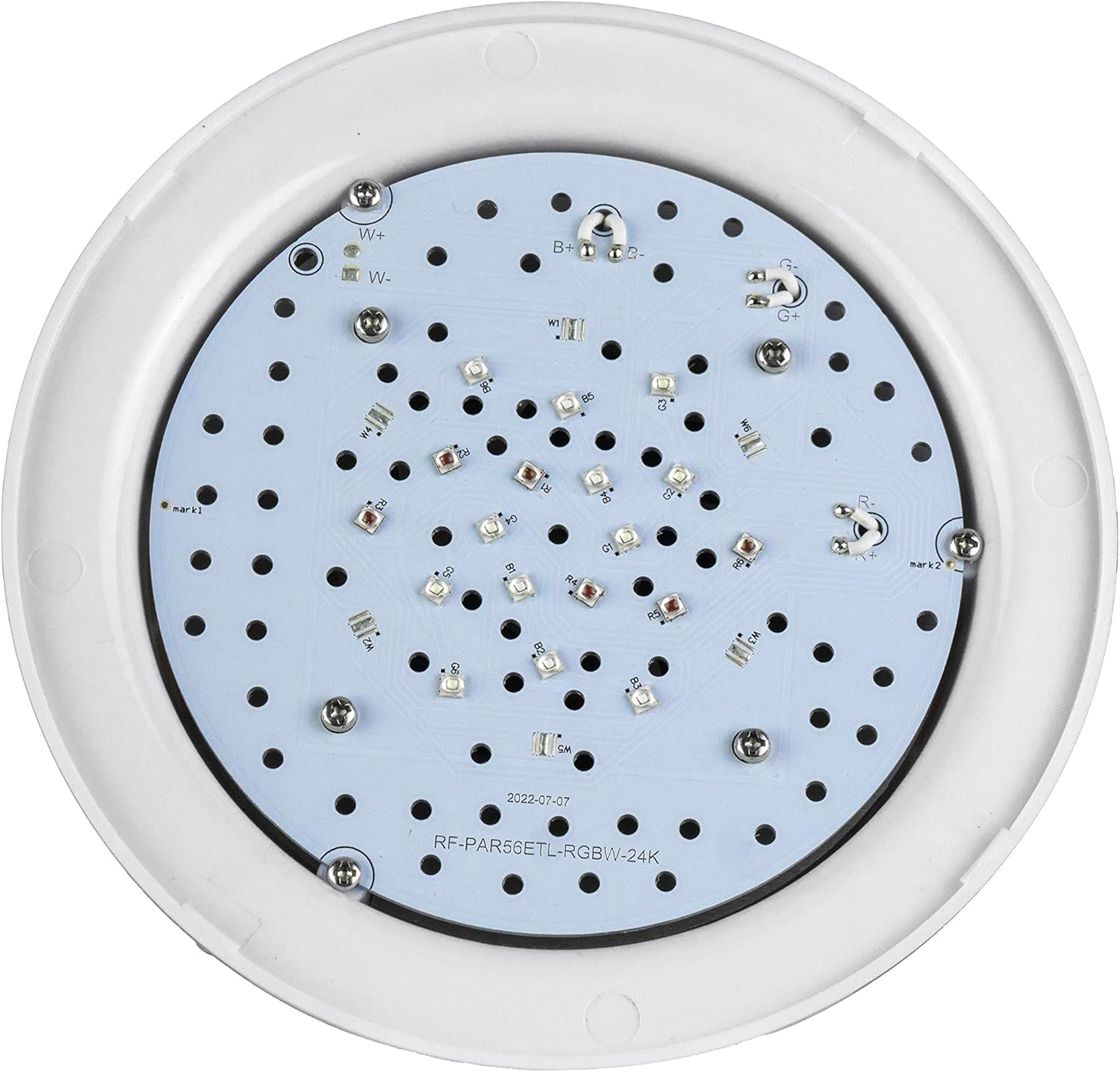 تصوير: مٿي view of the Pureline LED pool bulb, highlighting the LED array.